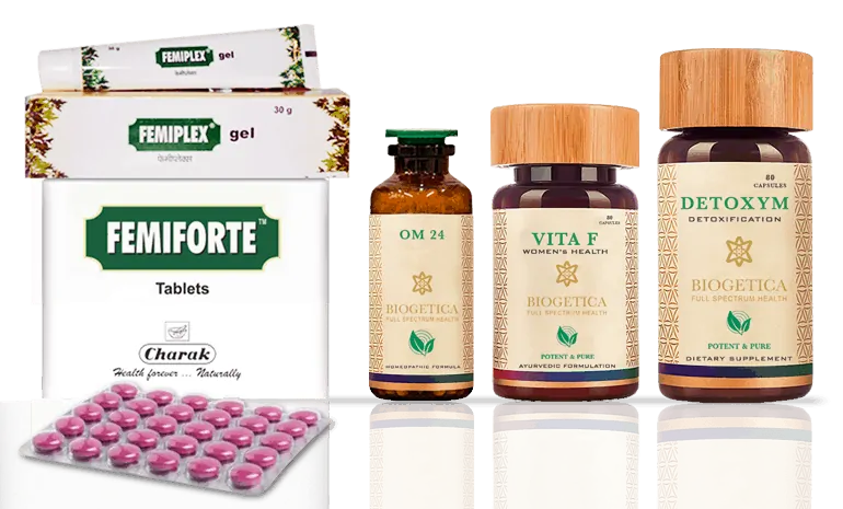 The Biogetica Deliverance Kit with OM 24 Formula, Femiforte tablets and AV Vita F formula is a synergistic combination of Ayurvedic herbs, nutraceuticals and homeopathic ingredients traditionally used to optimize the functioning of the female reproductive system. The kit comprises 5 natural products designed from the molecule up to provide health and freedom to you. ...Read More