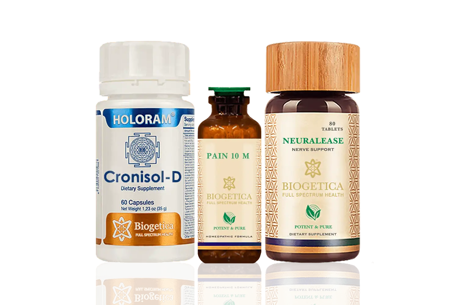 Chronic pain is disabling. Its bio-regulation is linked to the chain of pain synapses from the bone marrow to the central nervous system. HoloRam Cronisol-D is a Bio-regulator that blocks the signals of chronic pain. Its action exemplifies itself from the origin of the area of pain to the cerebral cortex, including all the driving and the central processes in the chain of pain induction.