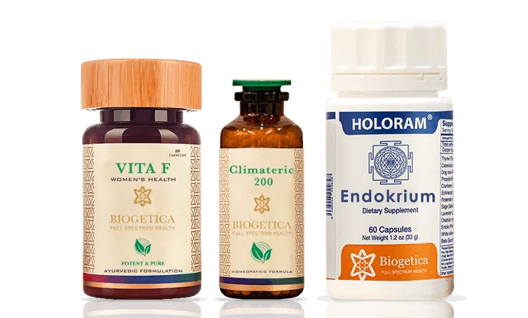 The Biogetica Freedom Kit with Menses Bleeding Menorease Formula is a basic combination of the Ayurvedic herbs, nutraceuticals and homeopathic products traditionally used forimproving female endocrine axis. ...Read More