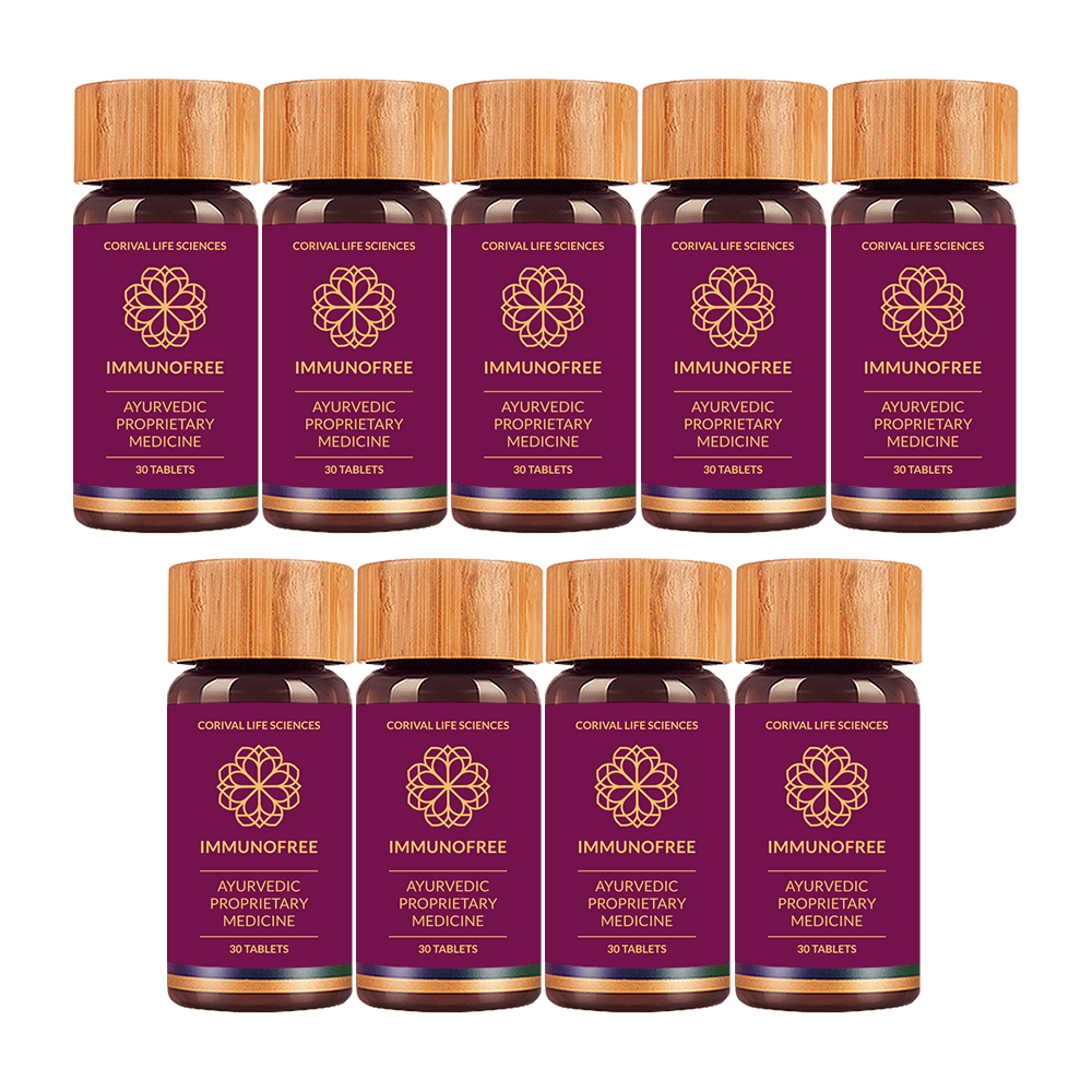 Immunofree blends a wide variety of phytochemicals, such as alkaloids, polyphenols, flavonoids, saponins, terpenoids, lignans, Xantones etc. These herbs have specifically been chosen based on research done in 2020. We use highly-concentrated full-spectrum extracts of these herbs in Immunofree.