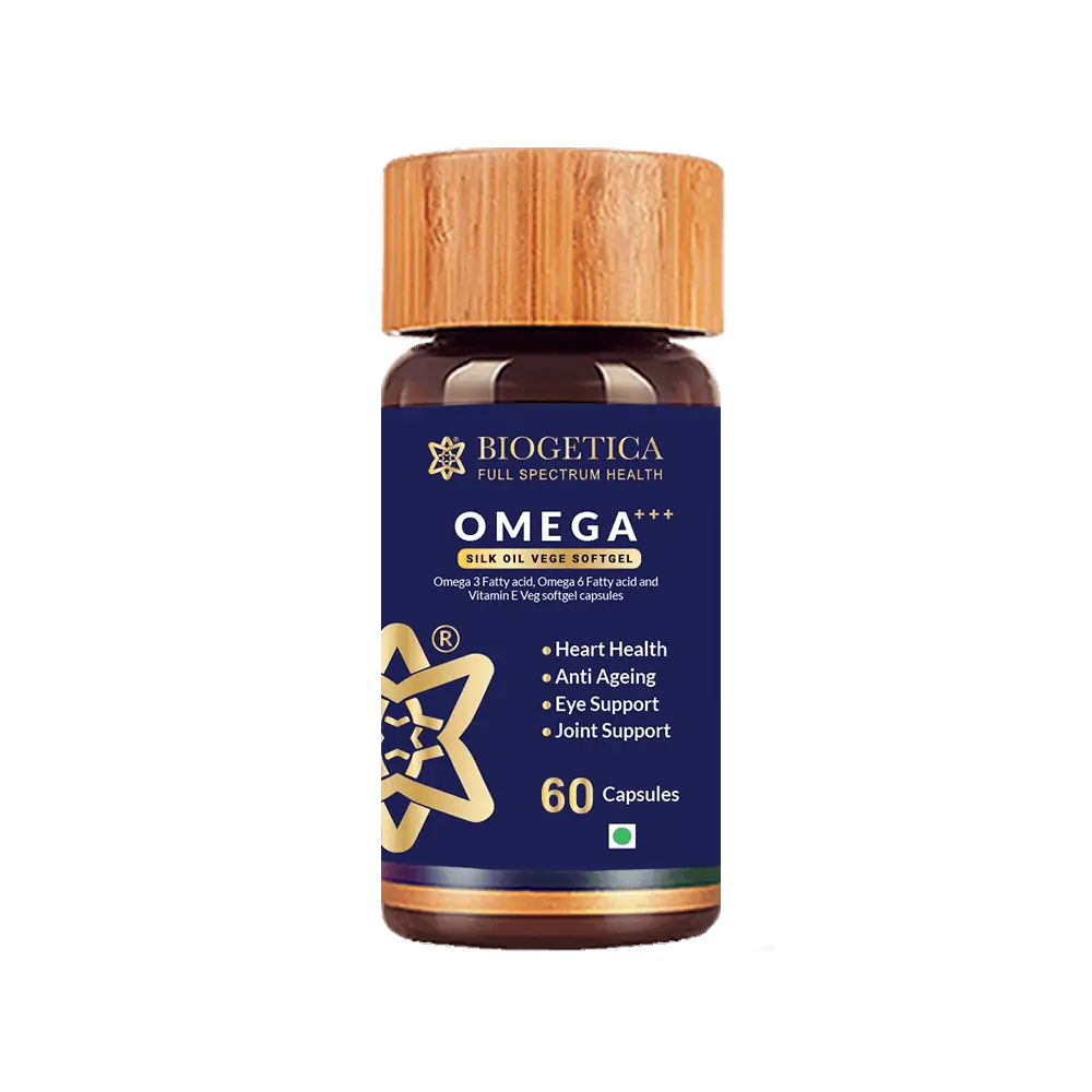 Omega-3 fatty acids are essential nutrients you get from food or supplements that help build and maintain a healthy body. These fatty acids are vital for optimizing joint movement, brain function, skin, and heart health. Hence the functions of Omega-3 fatty acids are essential to you living a long and healthy life. Biogetica’s Omega-3 fatty acids are a class apart from anything else in the market today owing to their unique nature and assimilation. Since it is usually derived from animal sources, vegans and vegetarians cannot get enough of Omega-3 from their diet and consequently have low levels of this vital nutrient. Biogetica’s Omega +++ Silk Oil Capsules are all-natural, 100% plant-based, and gluten-free. They are formulated with high alpha-linolenic acid (Ala), extracted from the silkworm chrysalis (Bombyx Mori) through a natural mechanical process without any solvents, and are ideal for vegans and vegetarians. In comparison with other silk oils, this capsule contains almost double the alpha-linolenic acid, the most important component of Omega-3, which makes it an ideal ingredient to add to your diet. Omega+++ Silk Oil Capsules are potentially believed to: