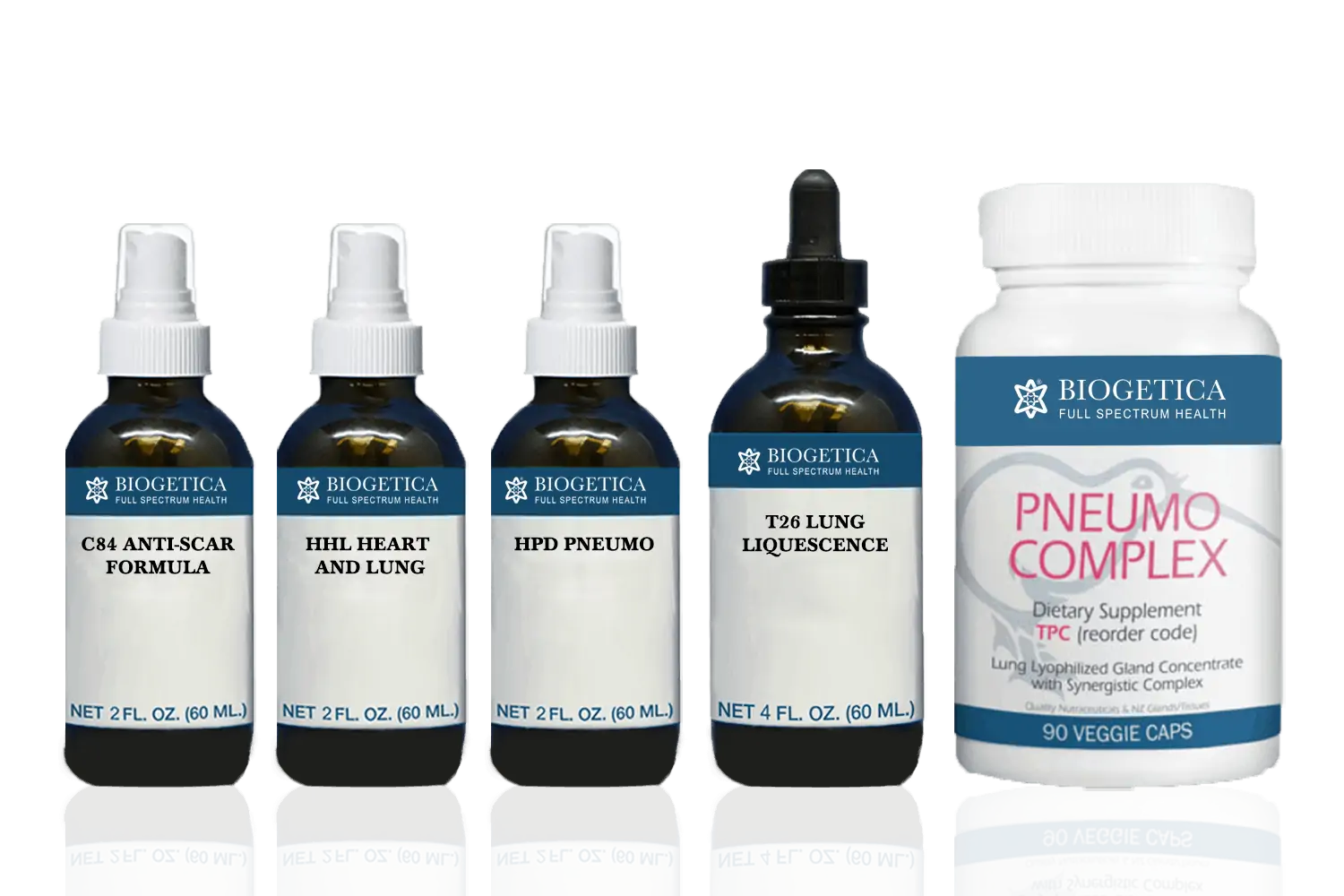 The Biogetica Optimal Kit with T26 Lung Liquescence Formula is an advanced combination of herbs, nutraceuticals, and homeopathic products traditionally used for optimal lung health. Our Doctors recommend this larger kit for chronic cases with secondary symptoms. This kit is manufactured in the USA with the highest quality of natural ingredients. ...Read More