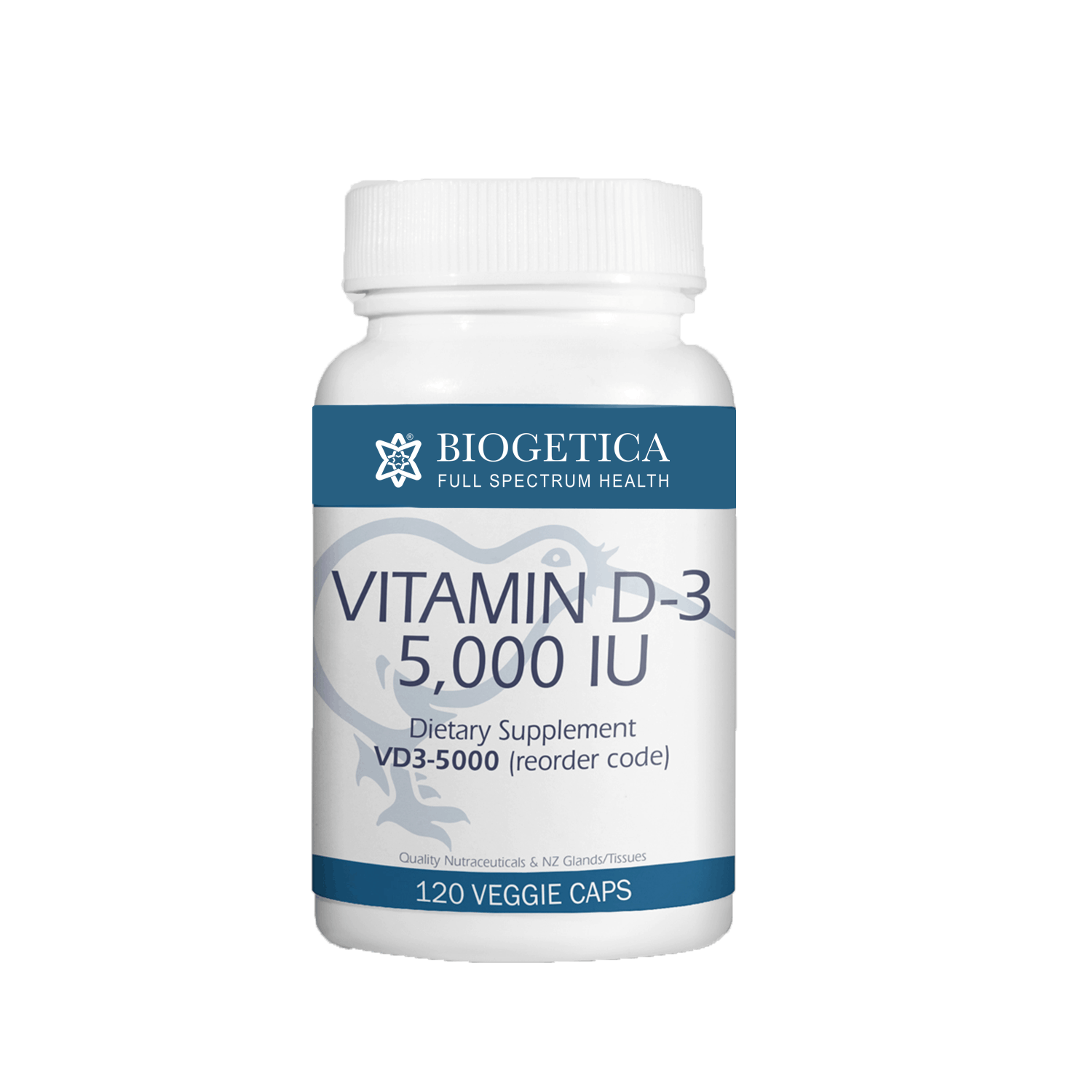 Vitamin D3 5,000 IU contains vitamin D3 (cholecalciferol), the bioidentical form of vitamin D synthesized in the body from cholesterol, following activation by the UV rays in sunlight. This form is excellent for maintaining healthy levels of vitamin D in the body. Current research suggests roles for vitamin D in bone and cellular health, and also in supporting immune, neurological, musculoskeletal, and cardiovascular health. ...Read More